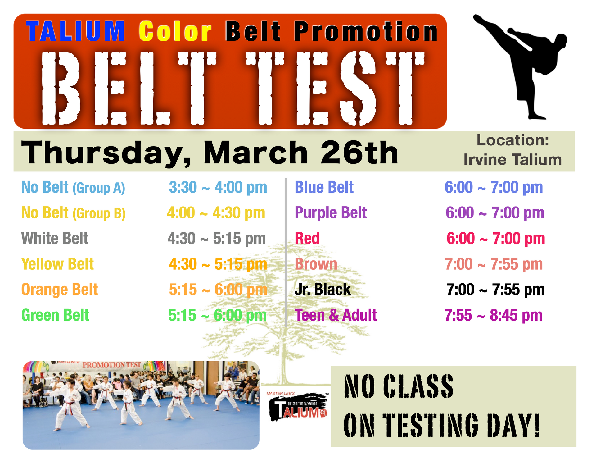 Black Belt Test Location: Talium Irvine School