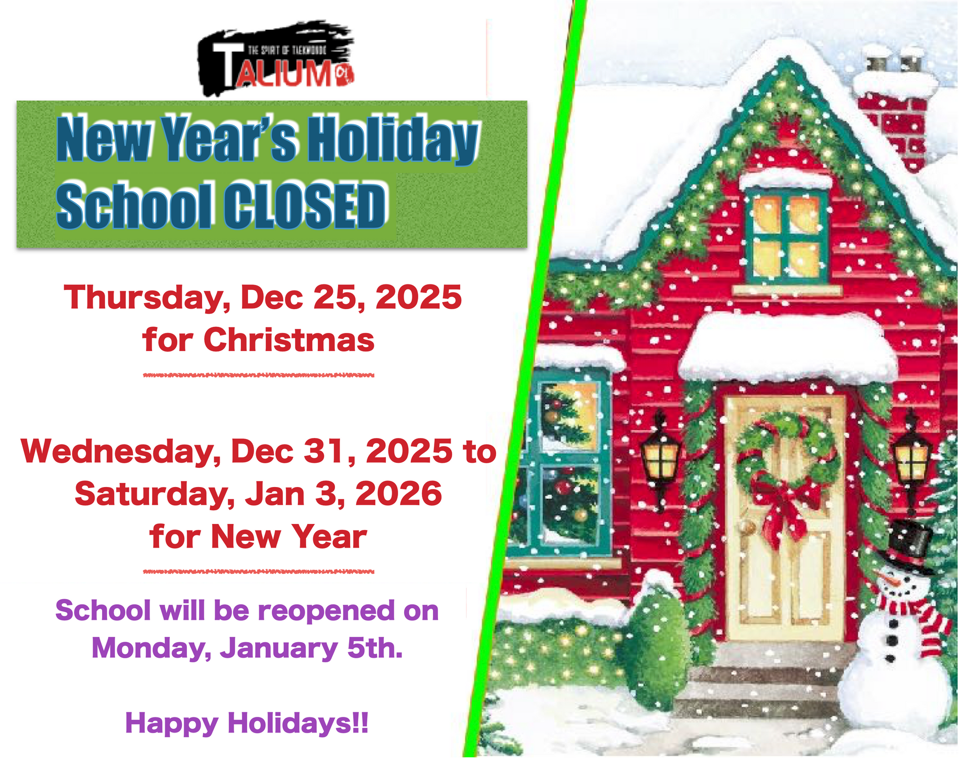 Please note that there will be Parents meeting on November 1st at Irvine Talum after running test at 5:00pm to 5:30pm with Grandmaster Lee.